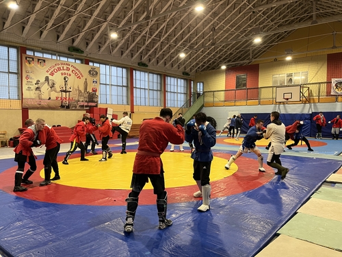 The first training session focused on Sport Sambo. Various throwing techniques were introduced and practiced as also in the ground game. National coach Albert Köpplin emphasized on technical understanding and clean execution of the techniques. The second session was dedicated to Combat Sambo. Main focus was on striking in the standing position, training of punching techniques and combinations, including transitions into throws. The session was concluded with friendly sparring to apply the techniques in a realistic setting